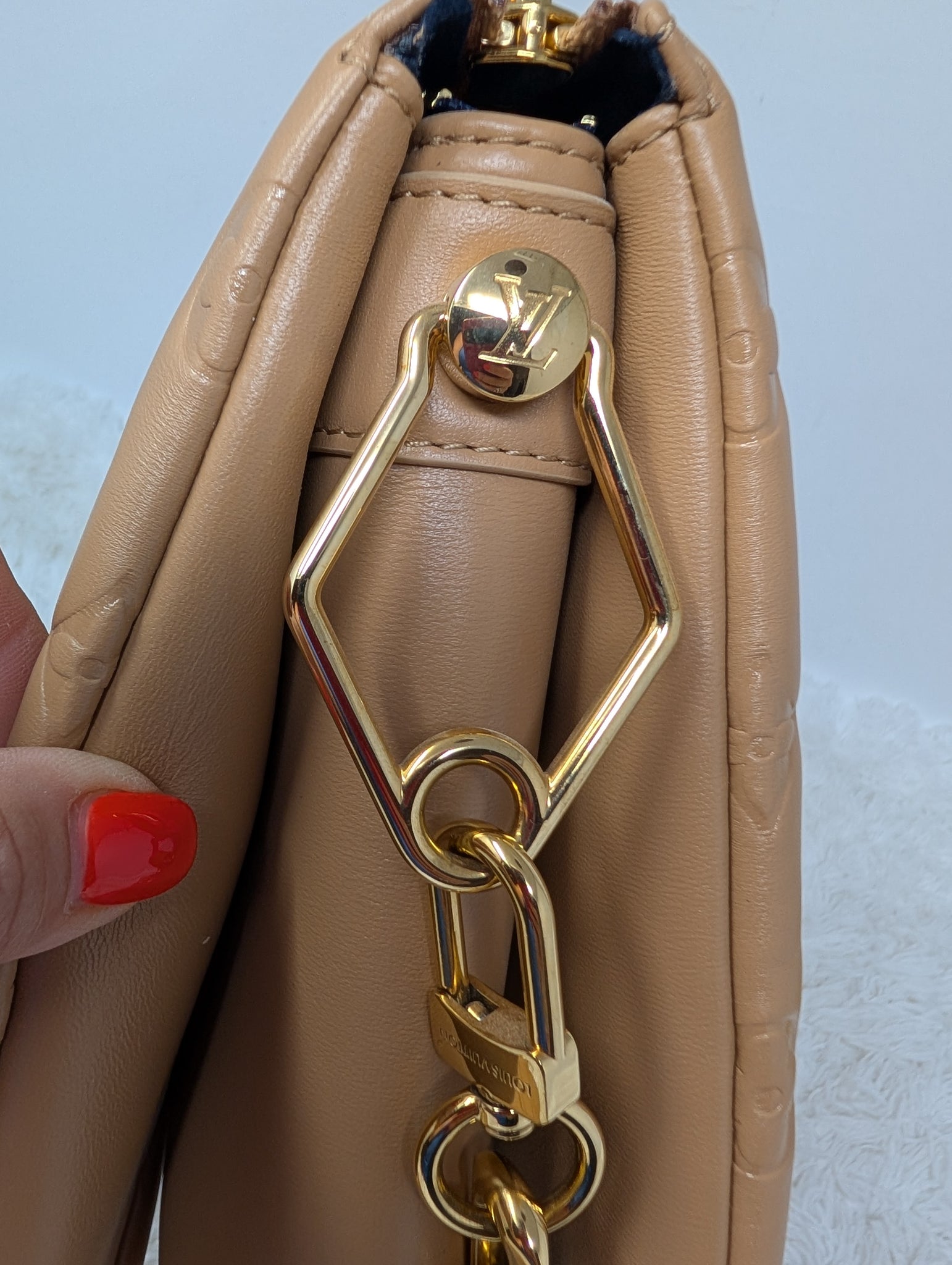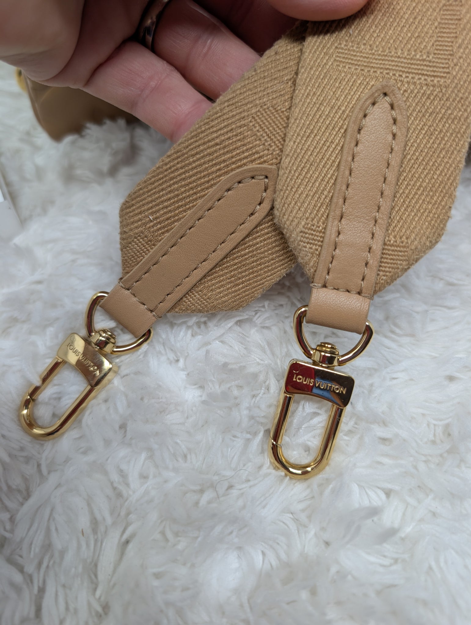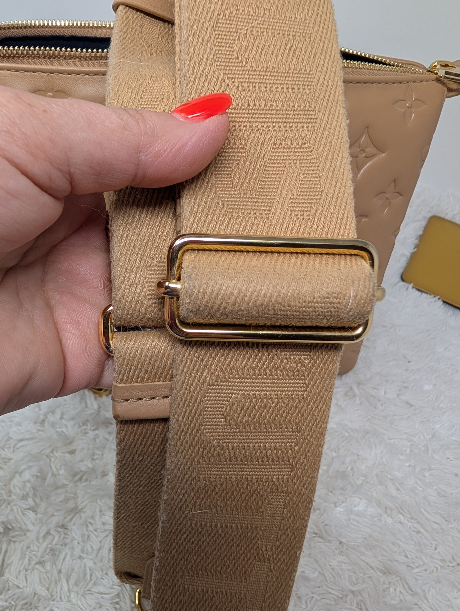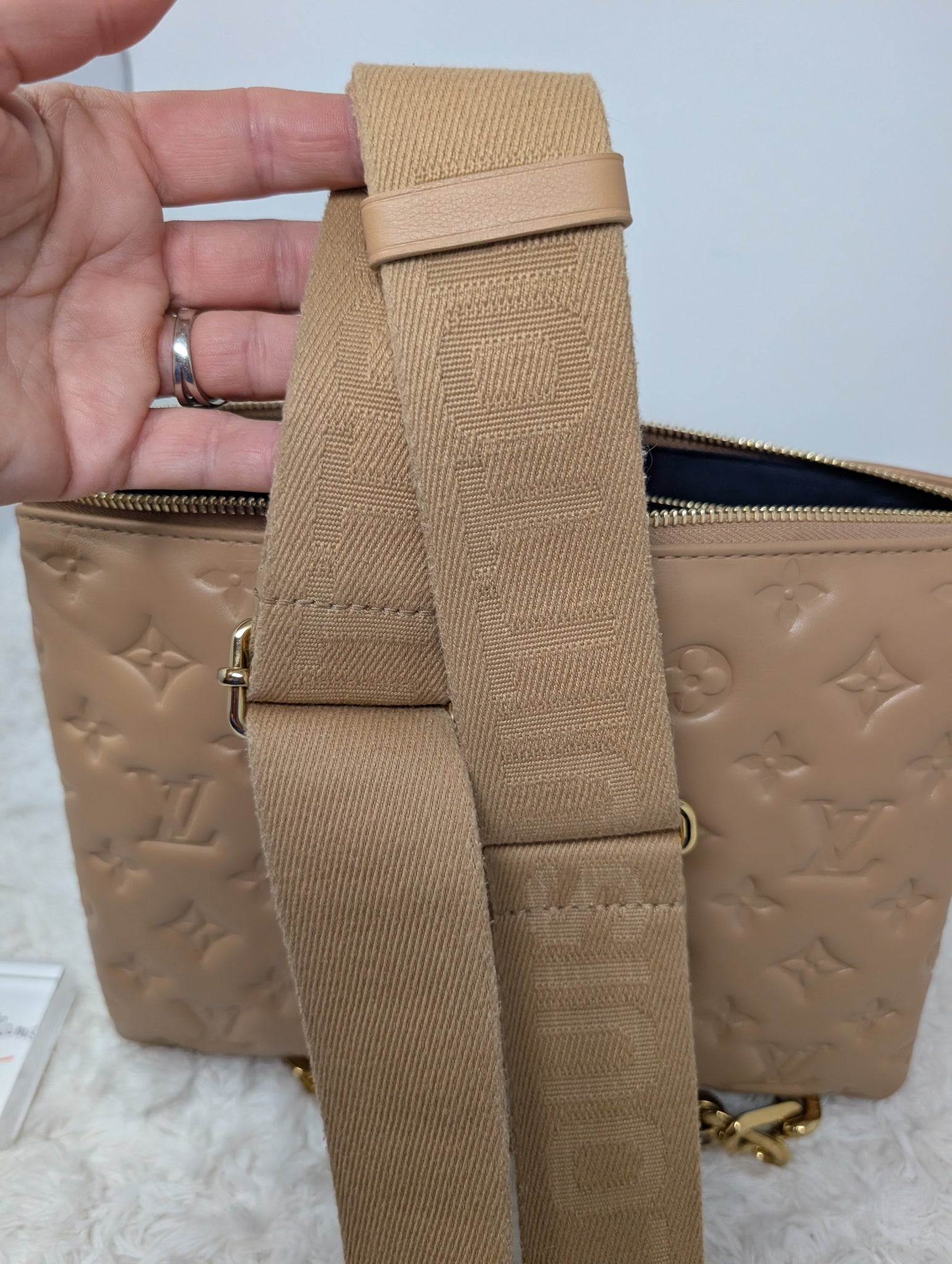 TAN EMPREINTE LEATHER - CANVAS CROSSBODY STRAP AND GOLD CHAIN SHOULDER STRAP, both detachable