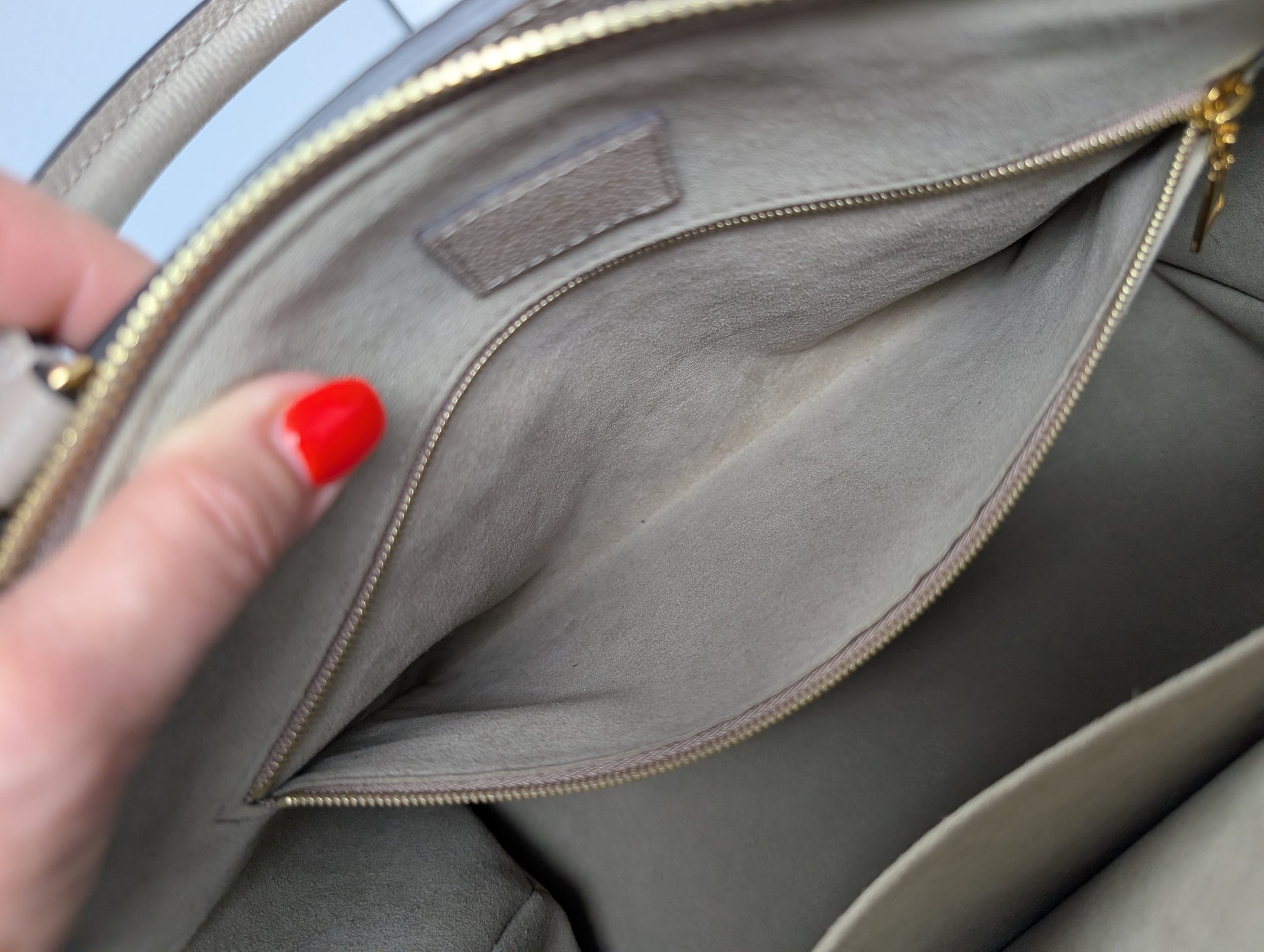 LOVELY EMPREINTE LEATHER IN THE EVER POPULAR CLASSIC NEUTRAL TURTLEDOVE COLOR WAY.