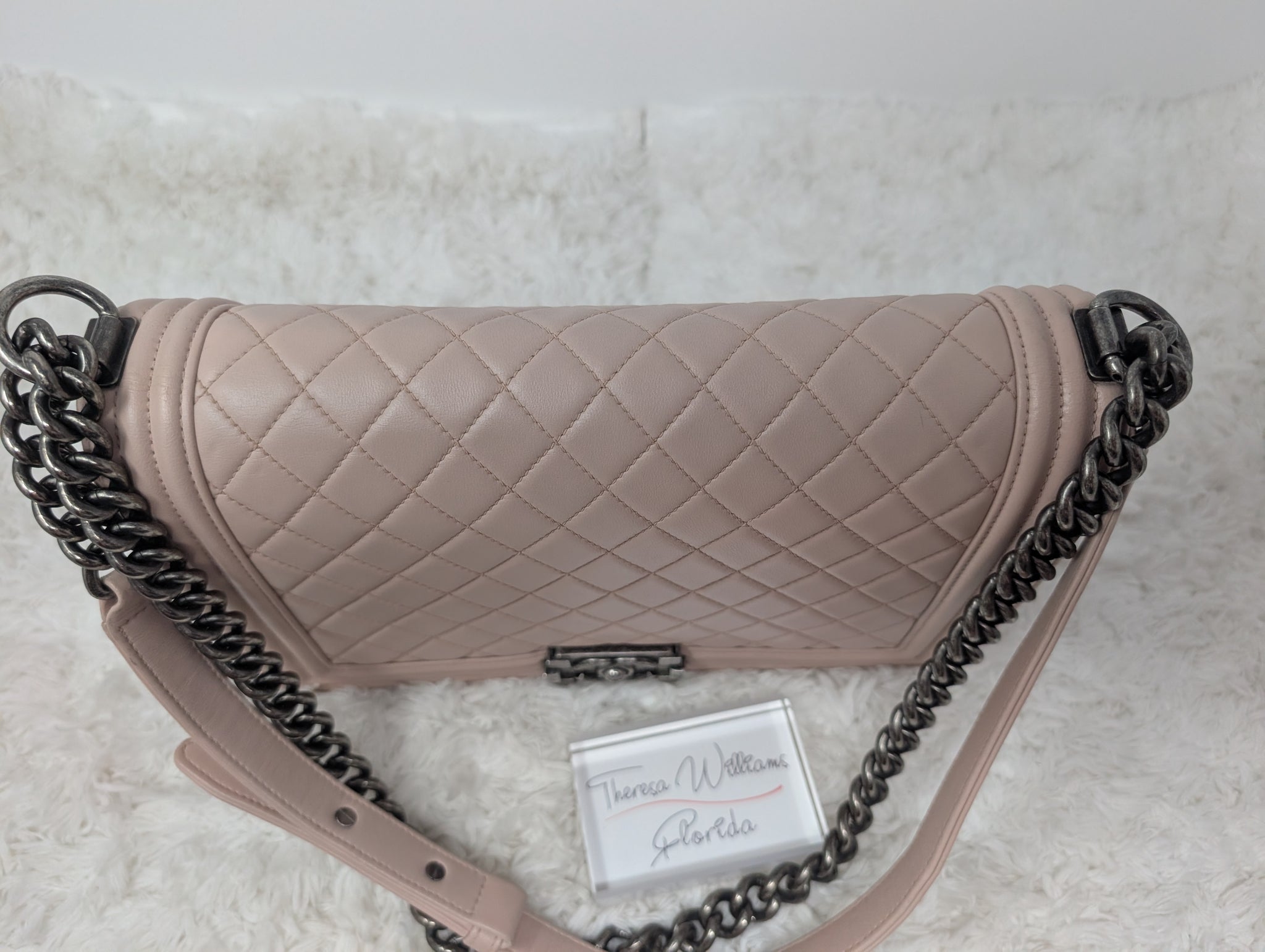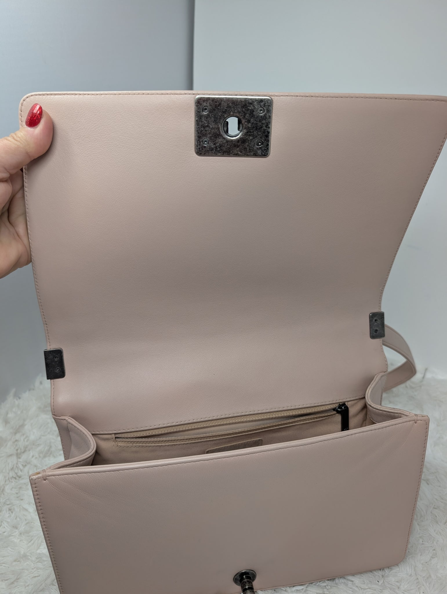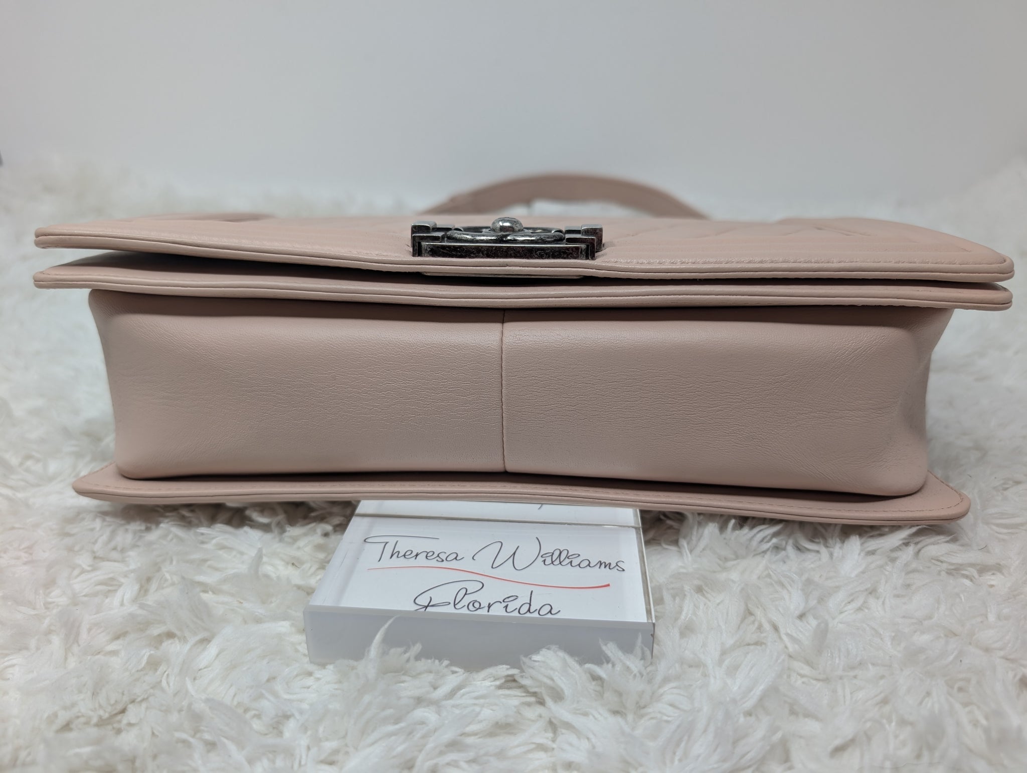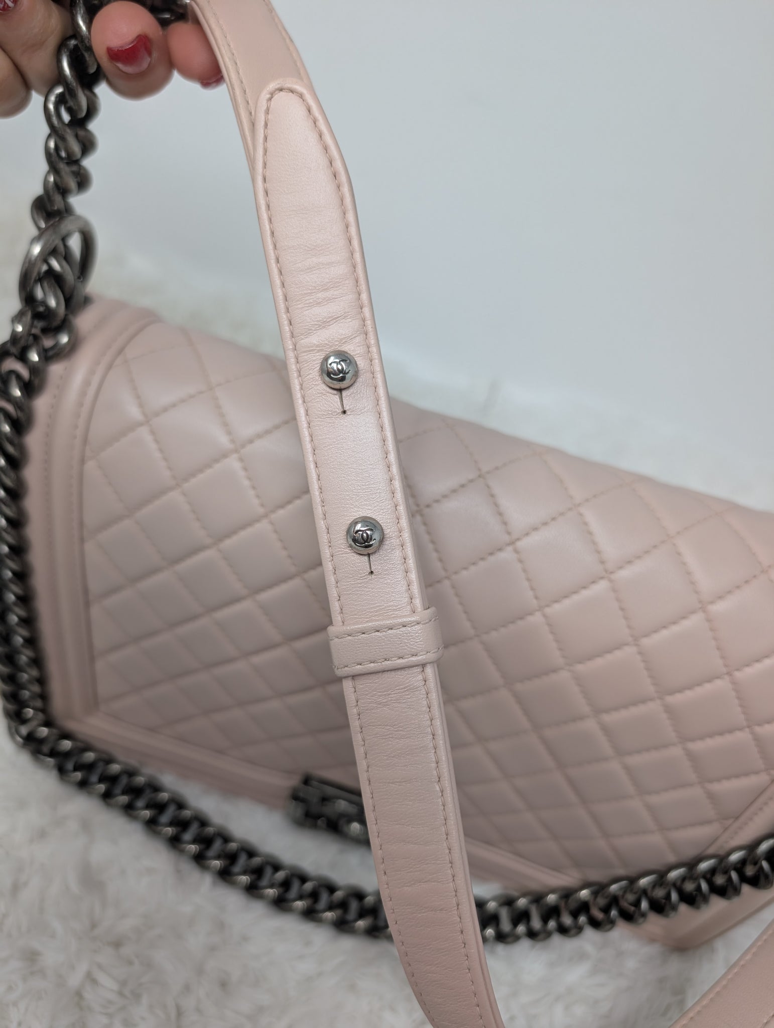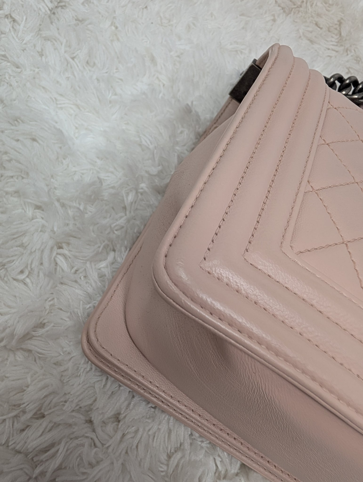 GORGEOUS BABY PINK CALFSKIN NEW MEDIUM BOY BAG, VERY EXCELLENT