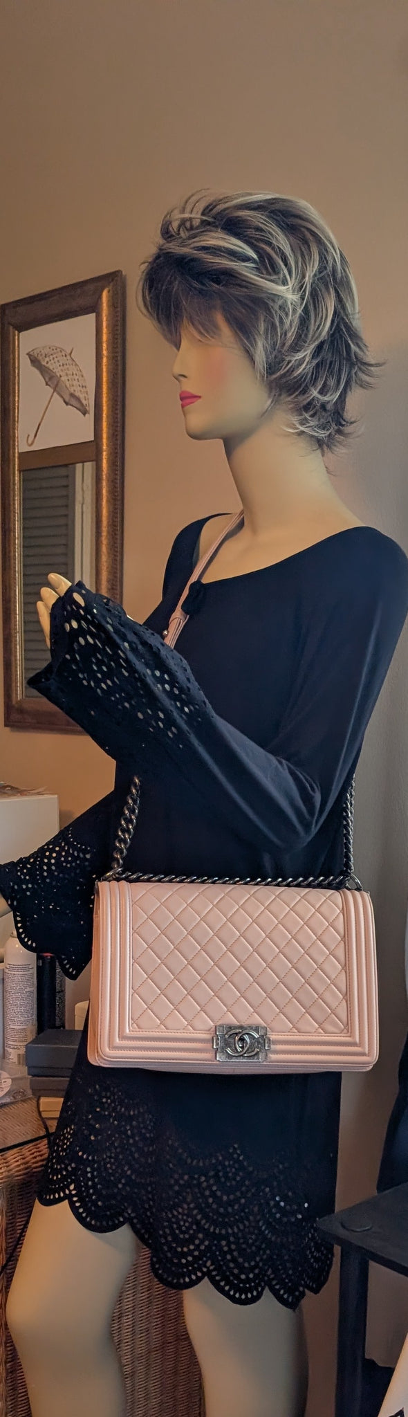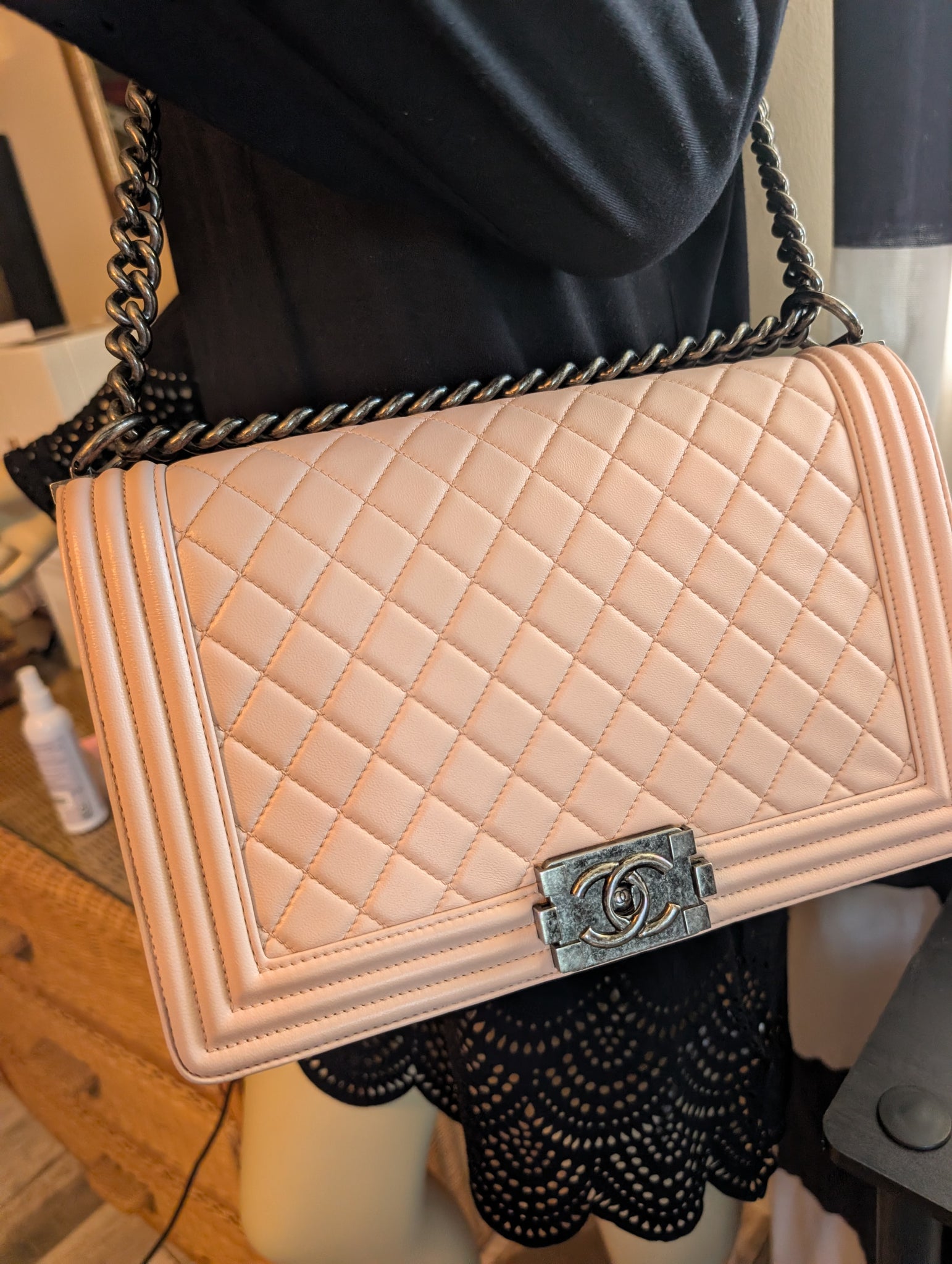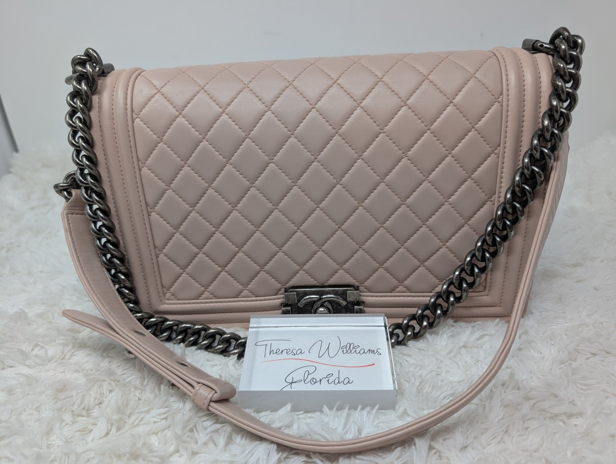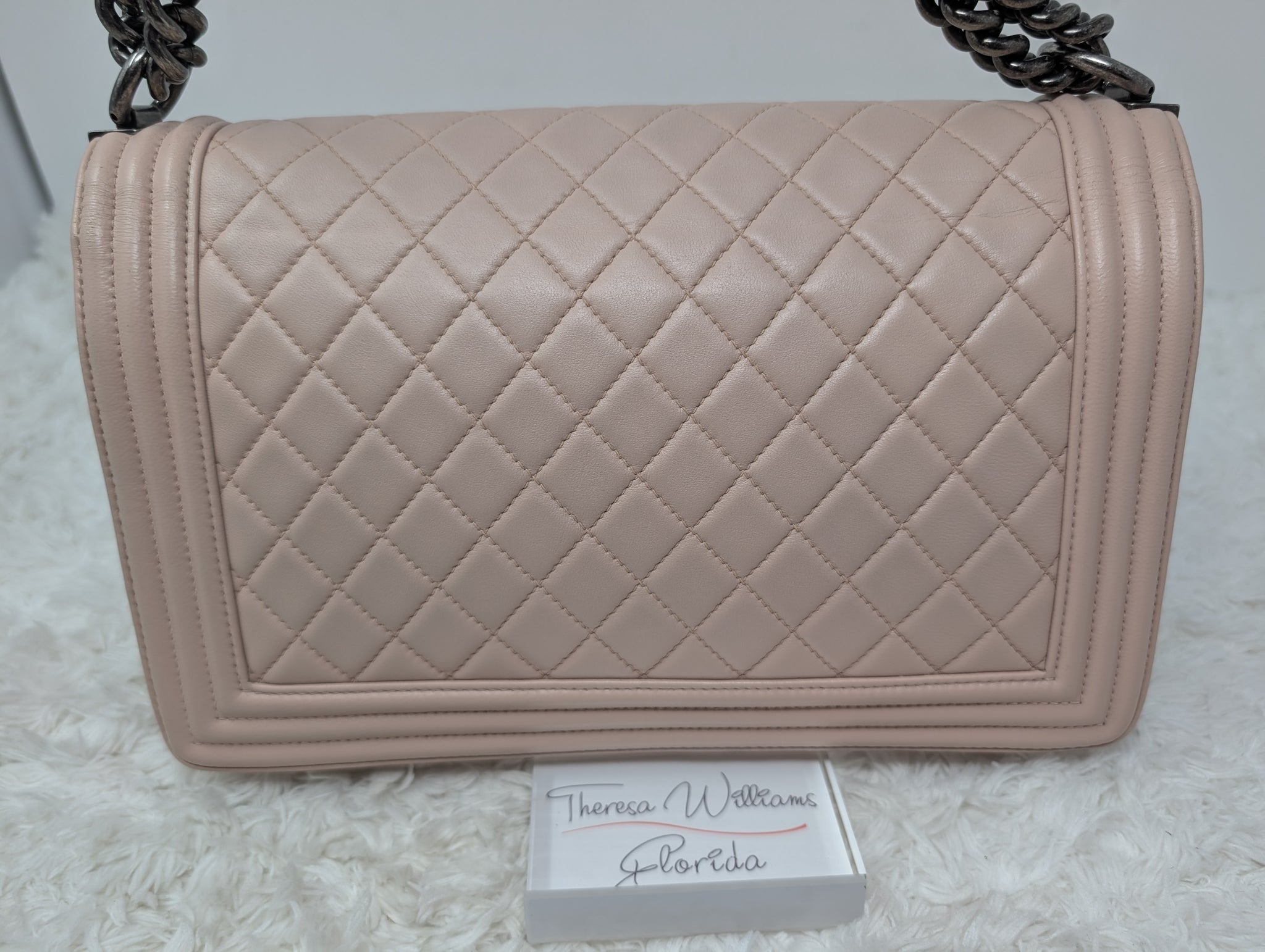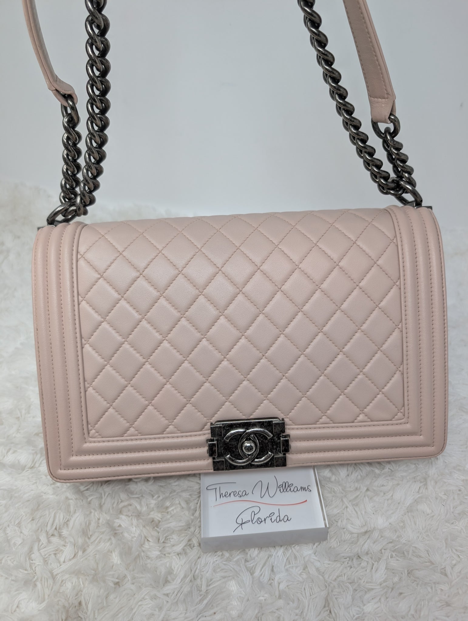 GORGEOUS BABY PINK CALFSKIN NEW MEDIUM BOY BAG, VERY EXCELLENT