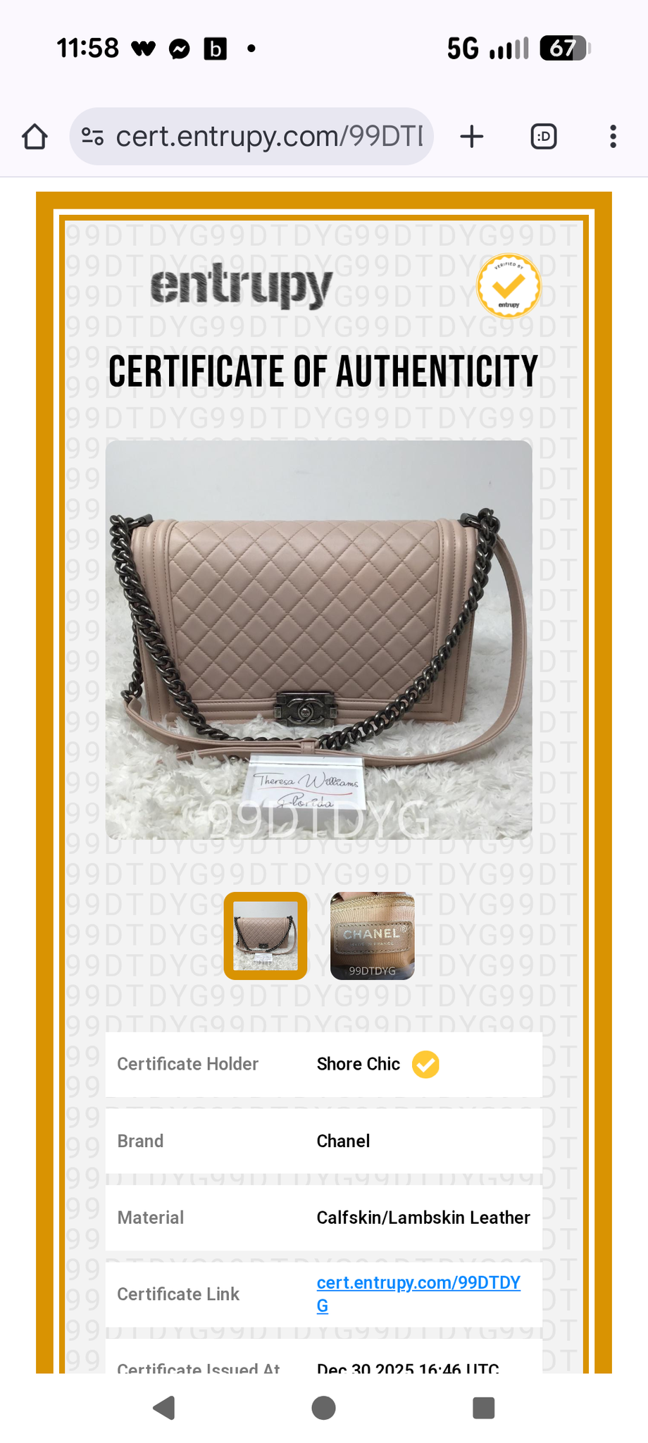 - Entrupy verified authenticator