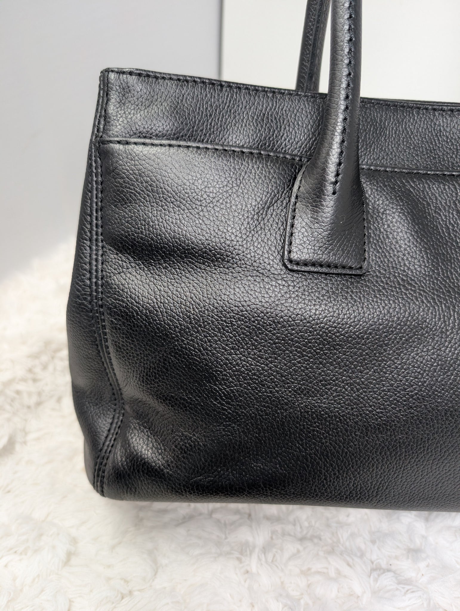Great condition on this classic satchel tote. With 3 compartments, she's easy to organize.