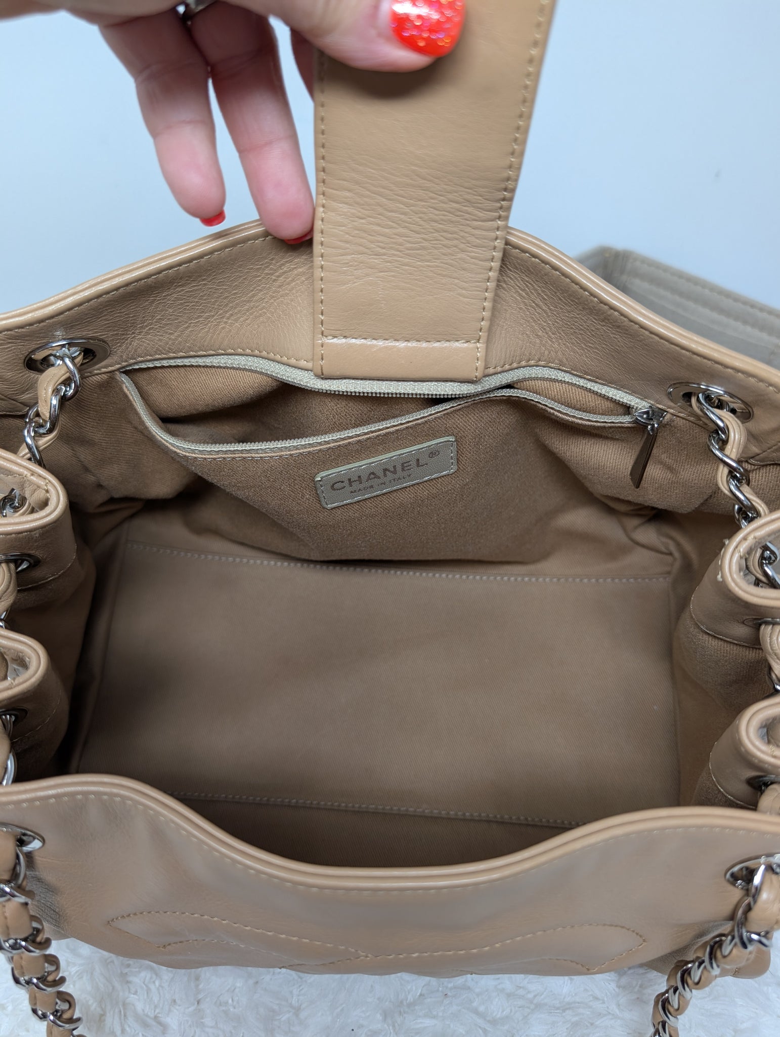 CLASSIC C.C. LIGHT BEIGE HOBO STYLE SHOULDER BAG