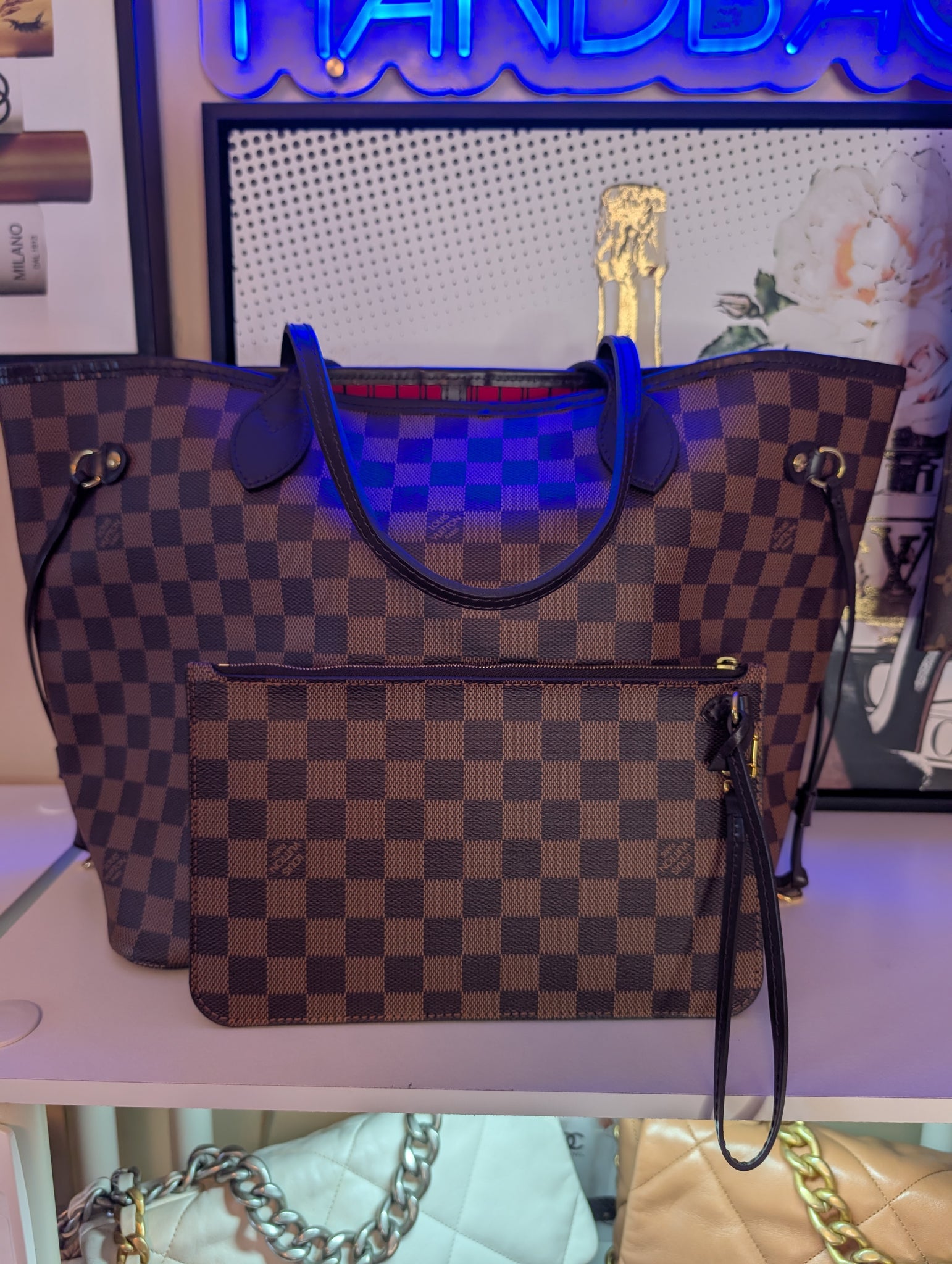 LOUIS VUITTON DE NEVERFULL MM AND POUCH, WITH RECEIPT