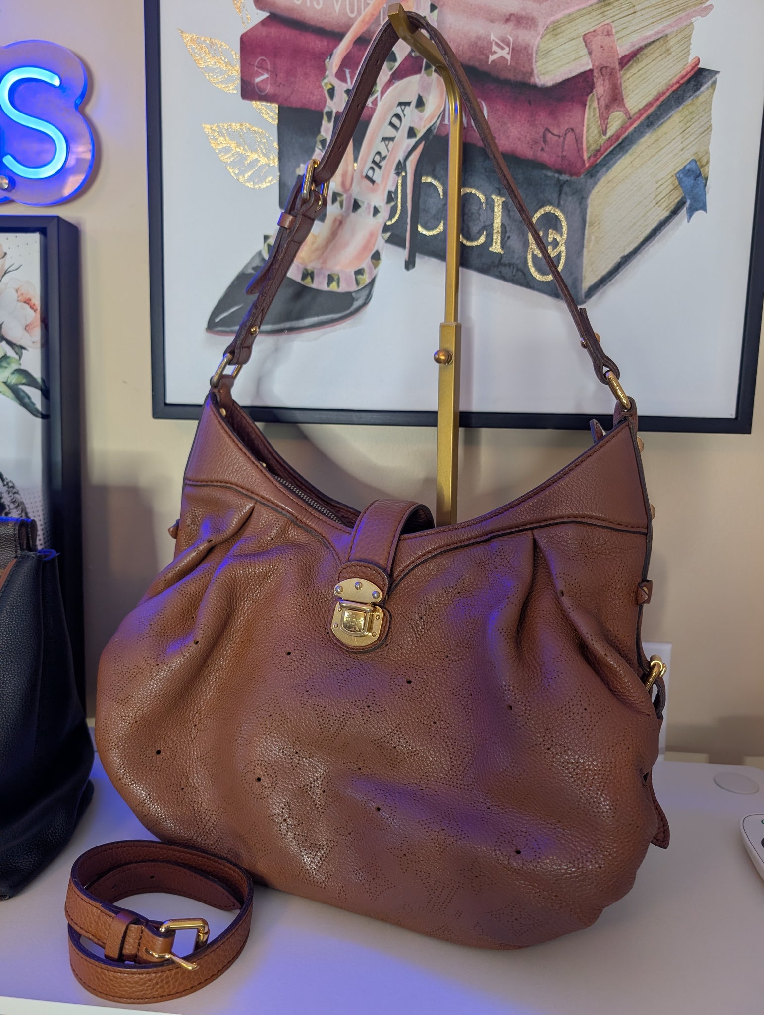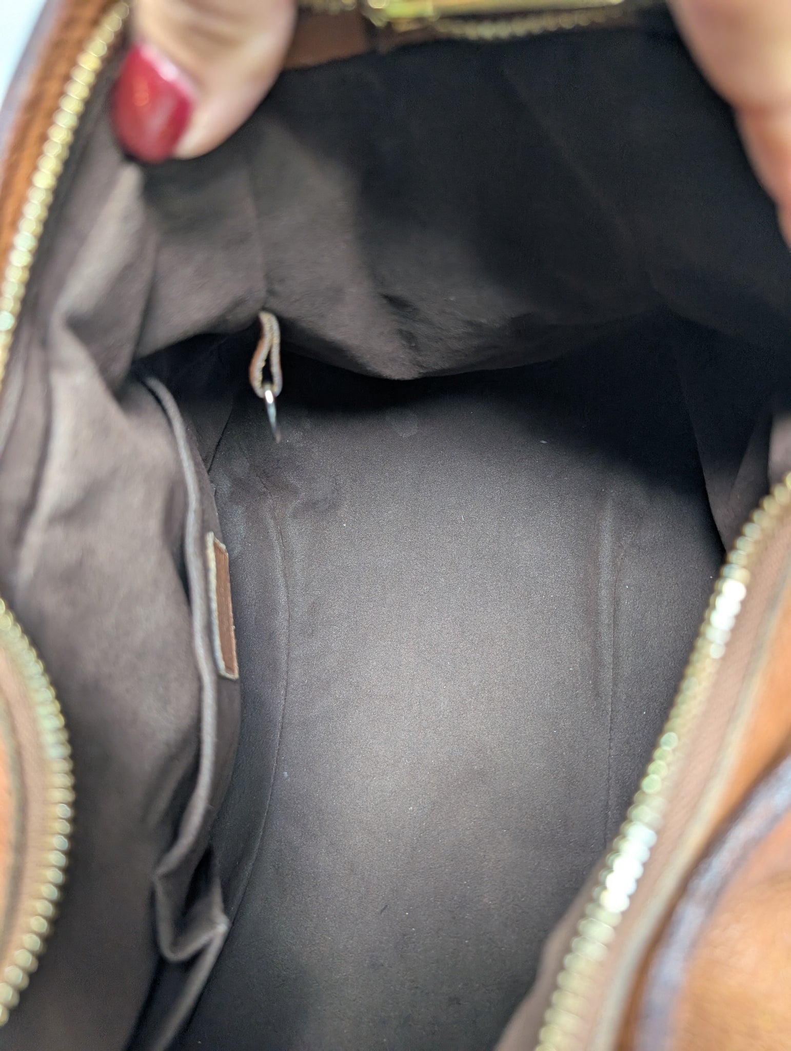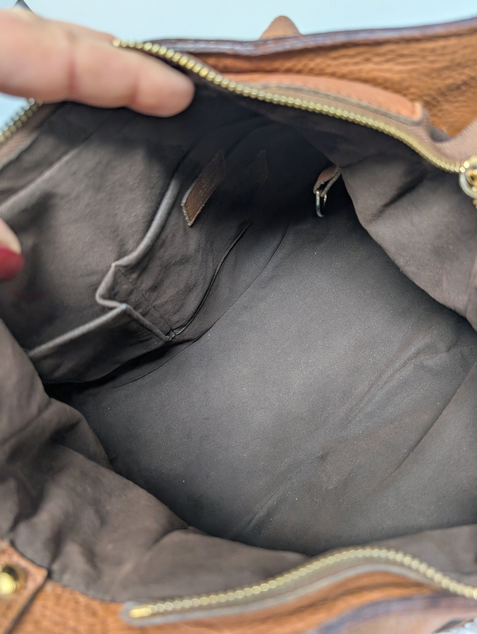 Only minimal wear to this leather beauty. Interior is clean. Hardware is bright.
