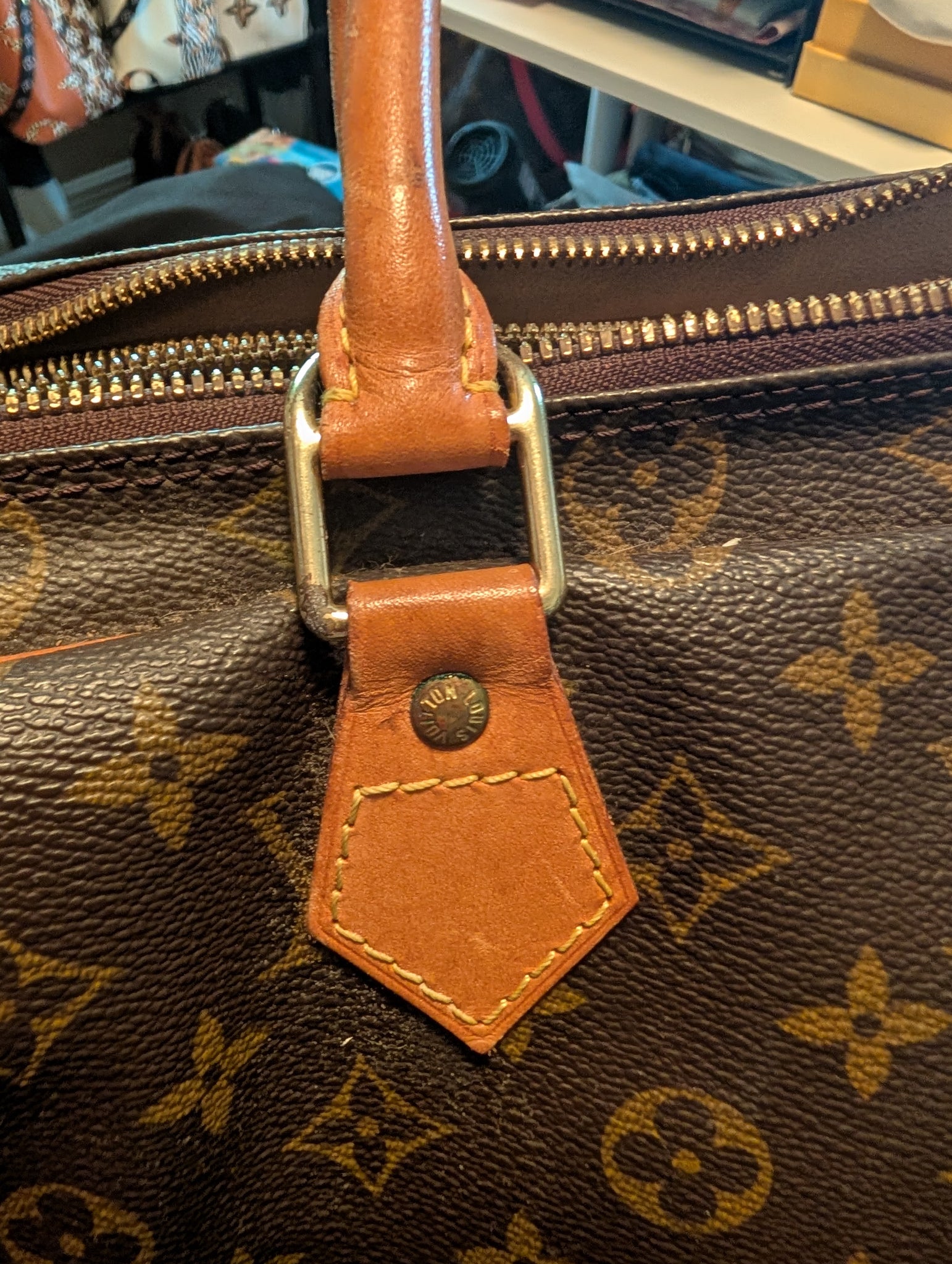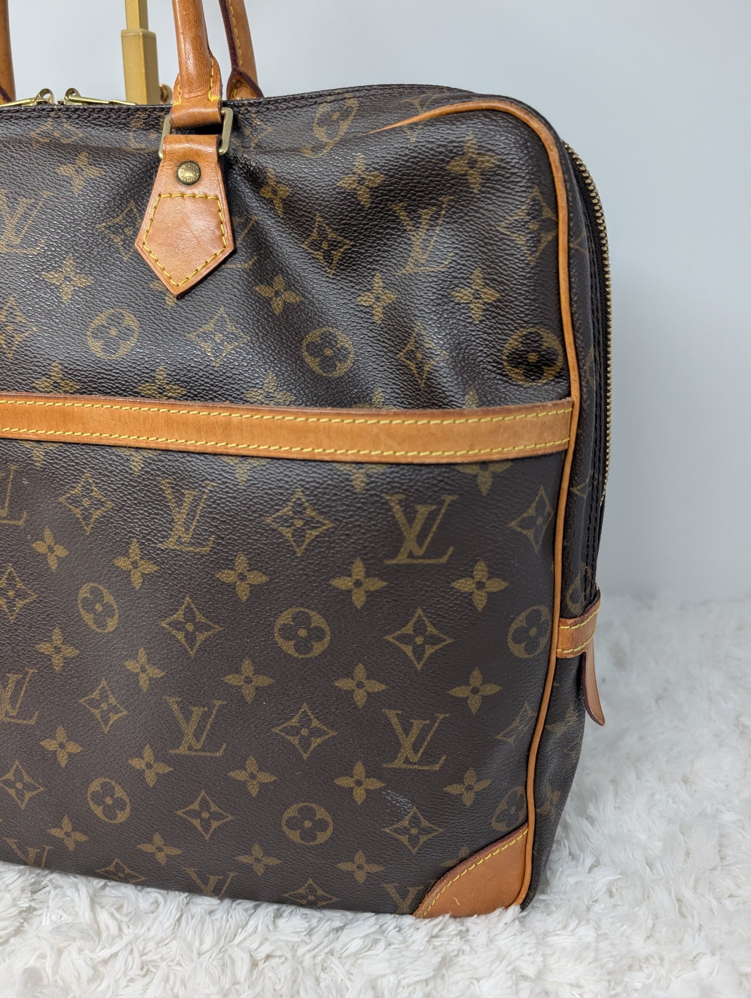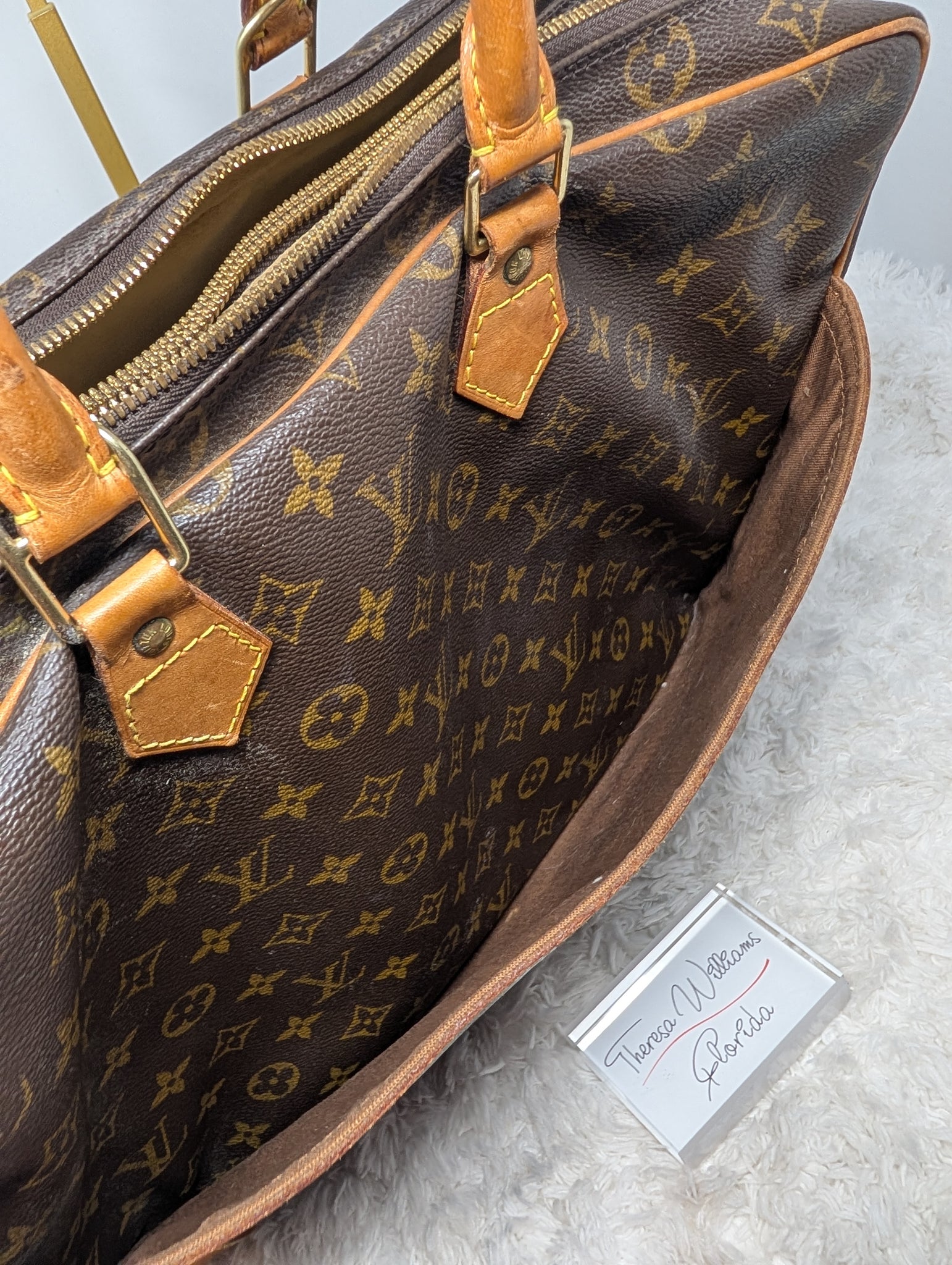 Exterior does show some signs of use, darker vachetta, some rubs, but overall briefcase remains in very good condition. If you had the patience to remove the sticky parts of the pockets, the pockets would become usable again. I never bothered I just didn't use those pockets when I carried the briefcase. There are many YouTube videos on how to clean out sticky pockets just FYI.