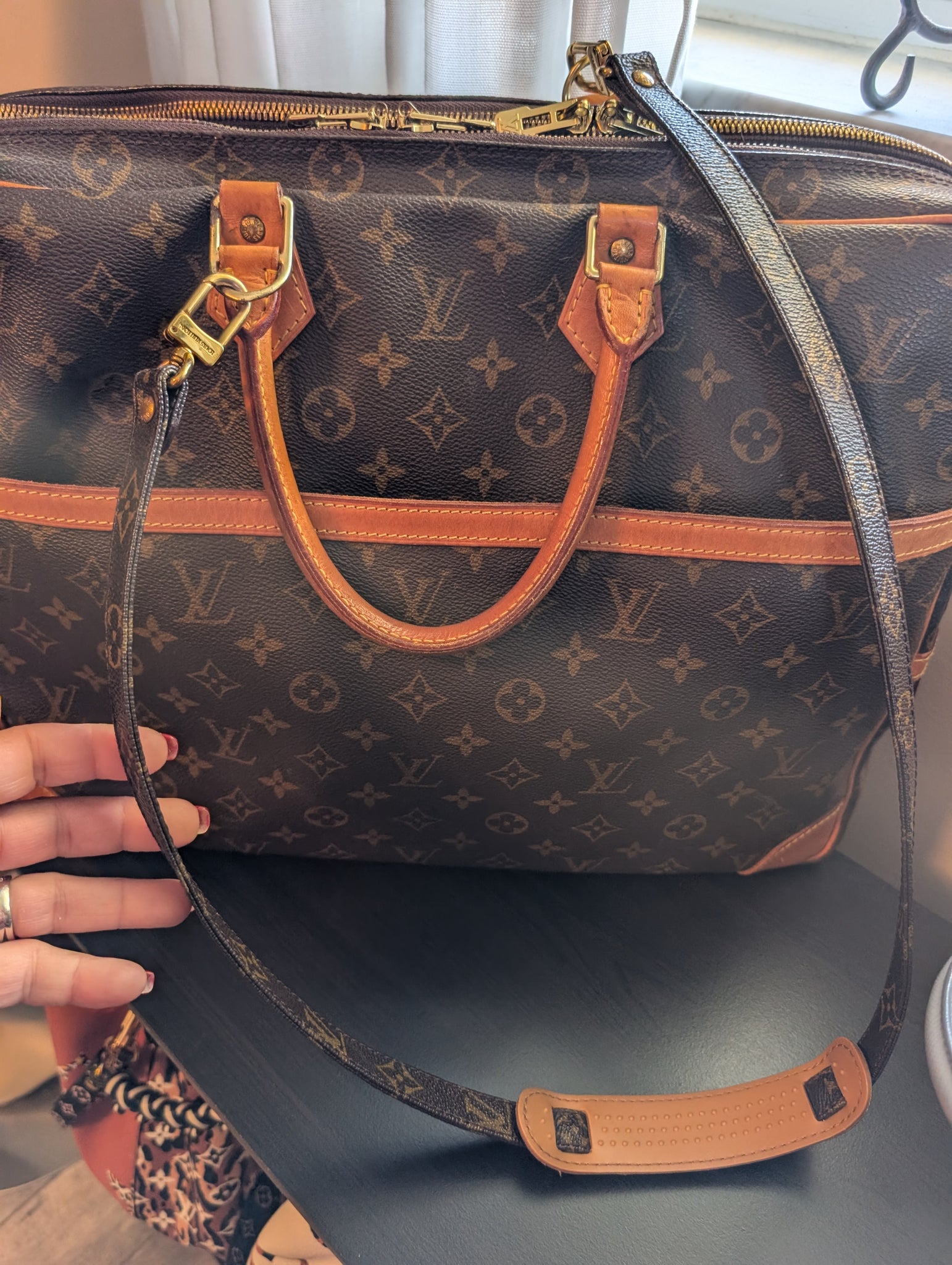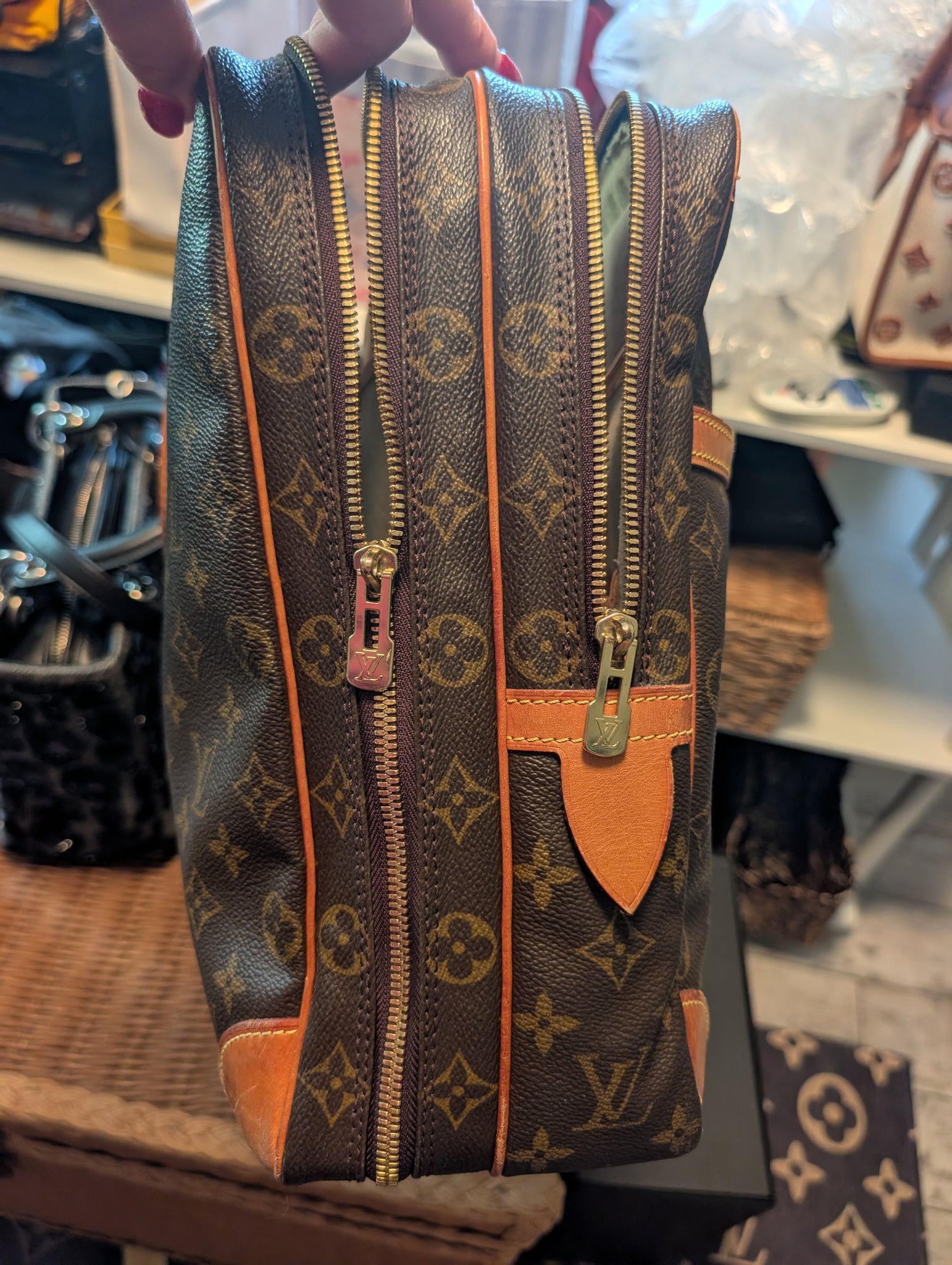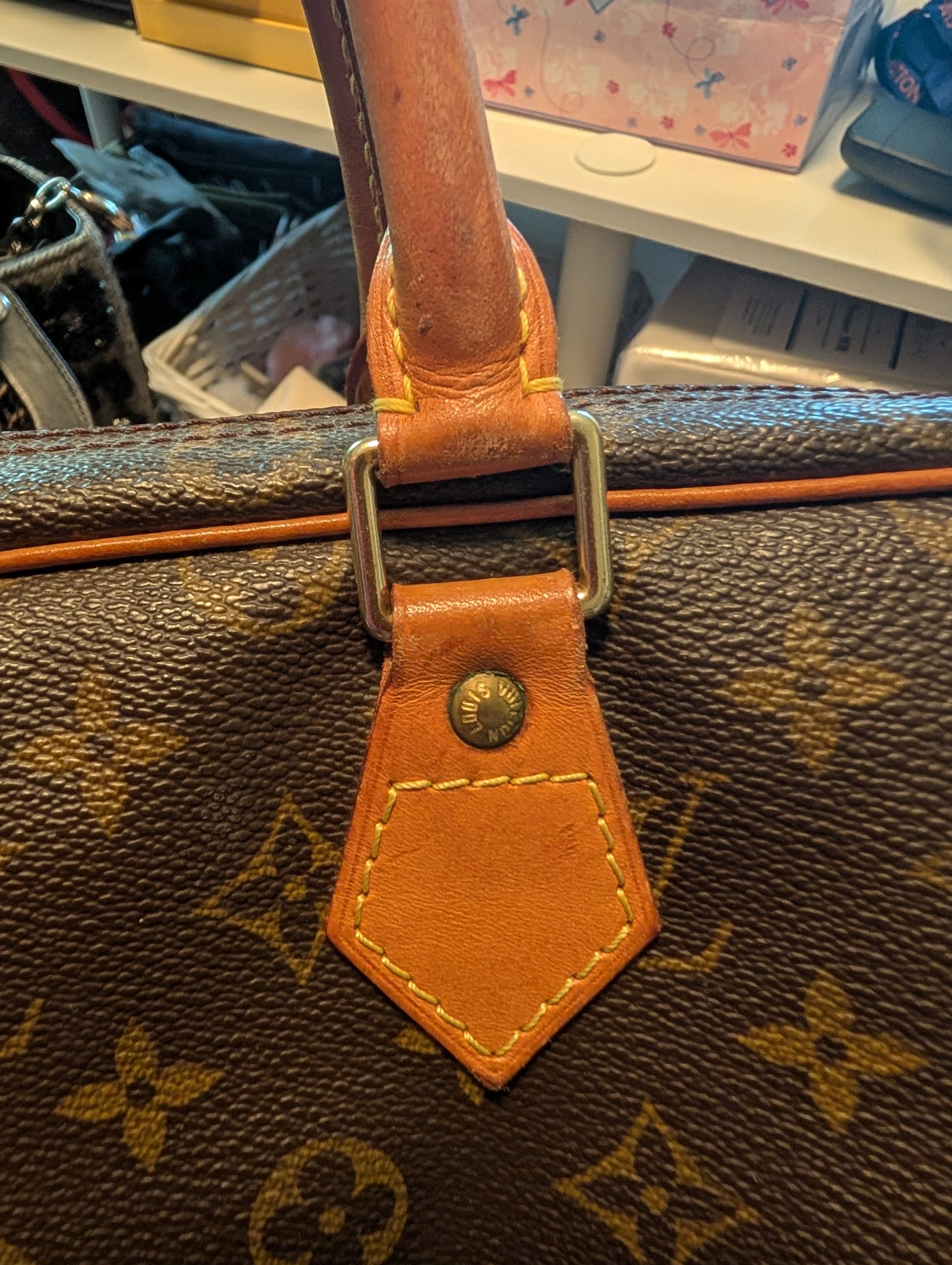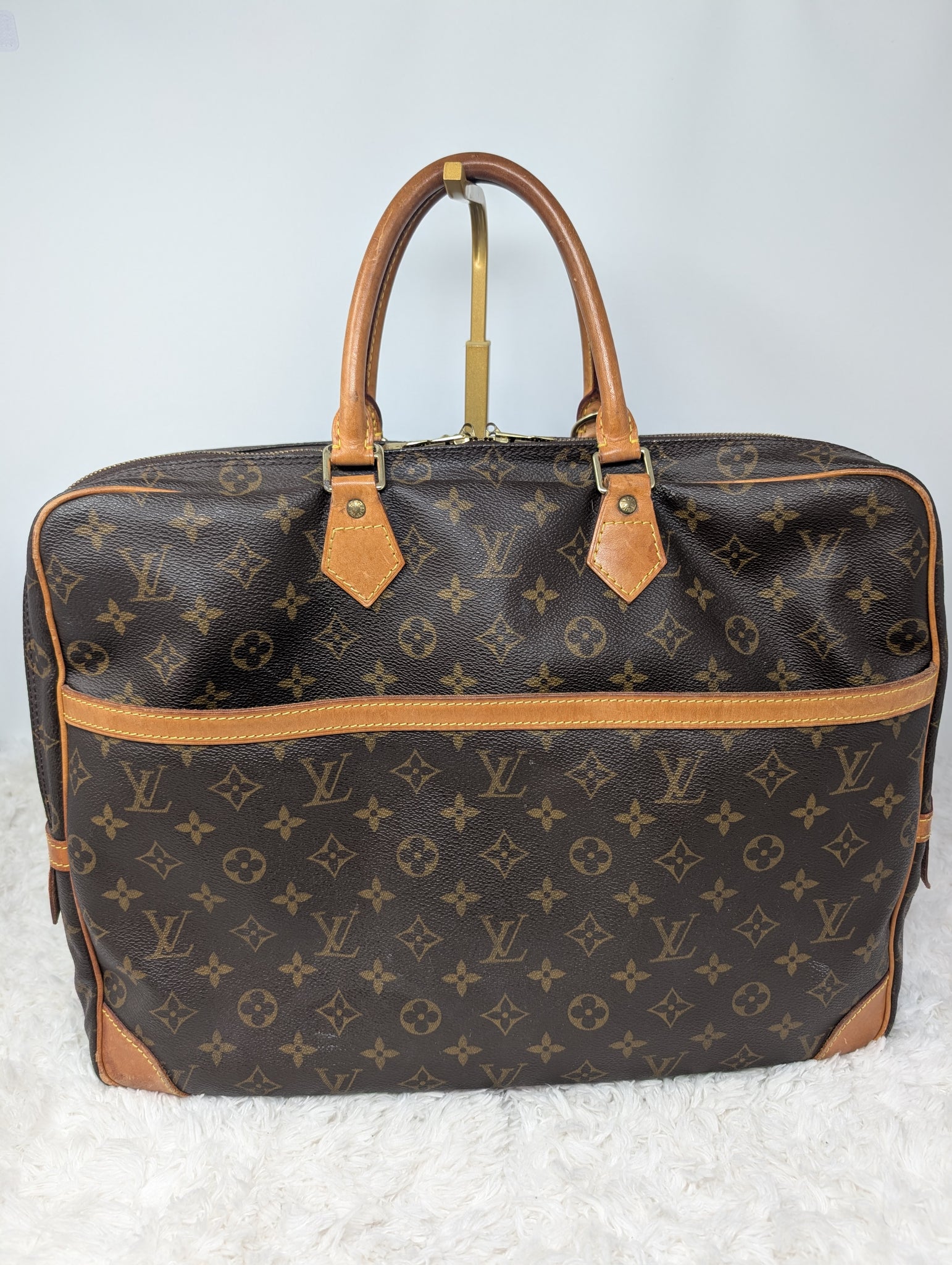 Exterior does show some signs of use, darker vachetta, some rubs, but overall briefcase remains in very good condition. If you had the patience to remove the sticky parts of the pockets, the pockets would become usable again. I never bothered I just didn't use those pockets when I carried the briefcase. There are many YouTube videos on how to clean out sticky pockets just FYI.