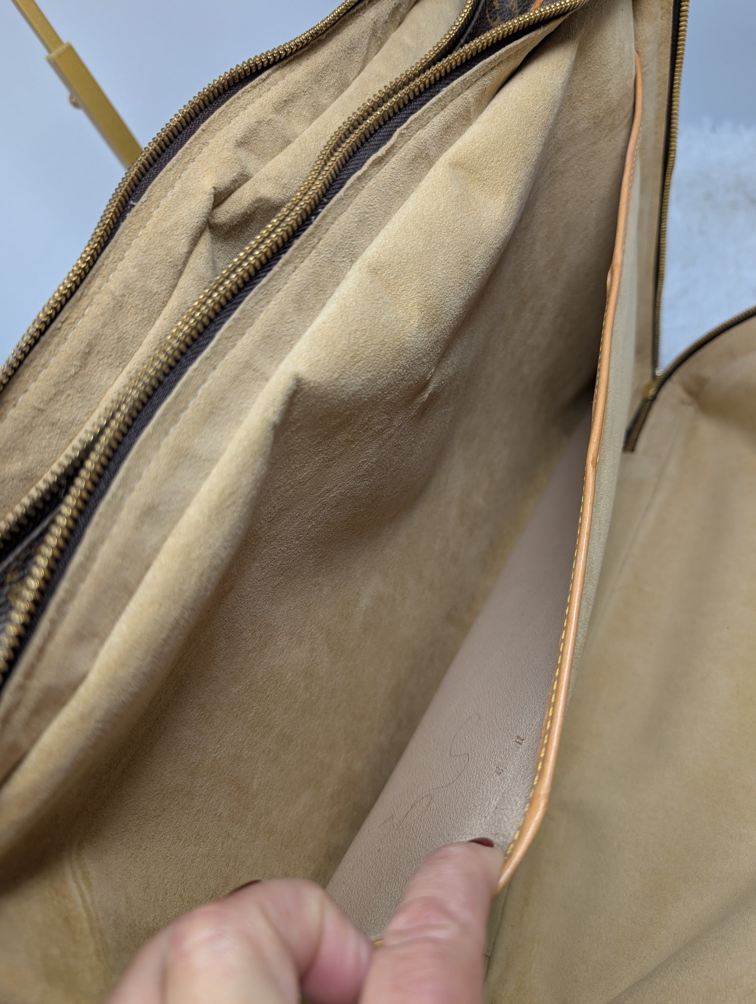 Interior pockets that are lined are sticky and peeling. Common issue with this age bag (2000). The main suede compartments of the bag are fine.
